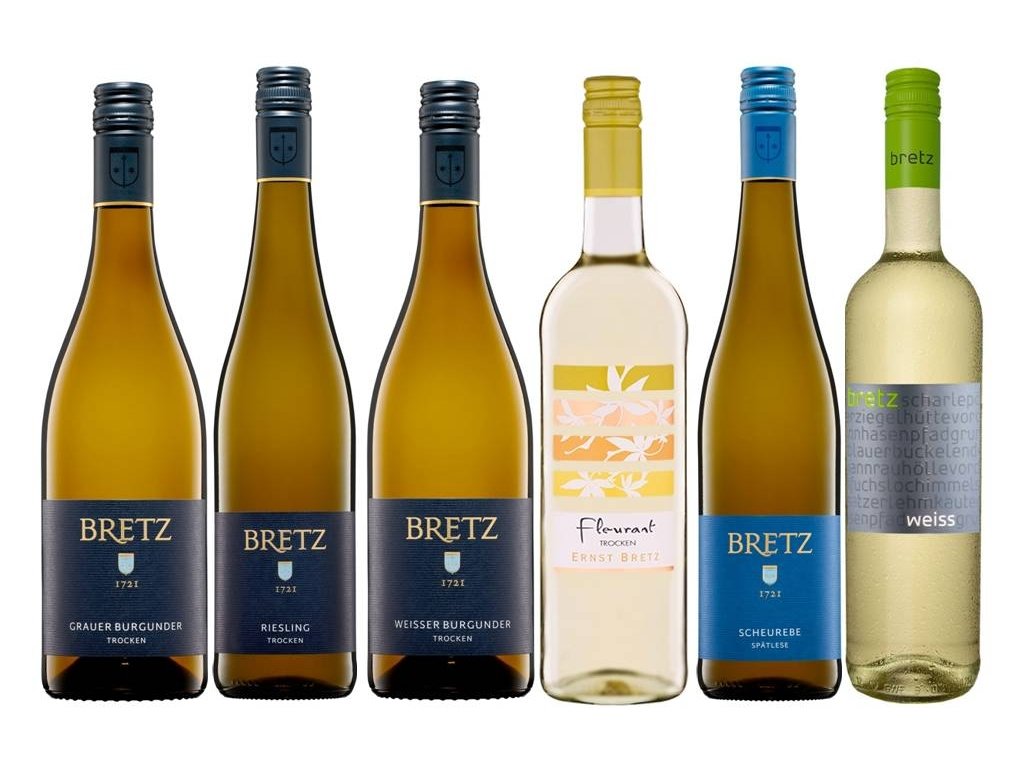 Balíček obsahuje šest bílých vín klasické řady Estate vinařství Bretz z největší vinařské oblasti v Německu.
