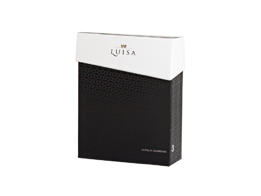 Černobílý elegantní obal na 3 láhve se zlatým logem vinařství Luisa. Ruční výroba, výklopné víko, velmi zajímavý design. Dárková krabice je vyrobena z tvrdého kartonu s efektním potiskem lesk-mat, který dodává punc luxusu a elegance.