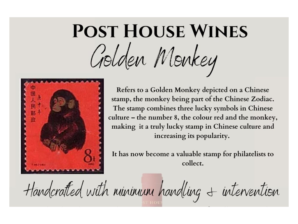 Název vína Golden Monkey okazuje na čínskou známku. Opice je částí čínského zvěrokruhu. Na známce jsou vyobrazeny tři šťastné symboly - číslo 8, červená barva a opice,. Tímto se tato známka stala "šťastnou" známkou v čínské kultuře a to přispělo k její popularitě.