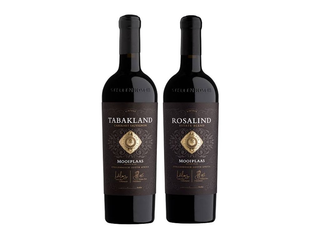 Balíček obsahuje dvě mimořádná VELKÁ vína, červené cuvée Rosalind a Tabakland ,Cabernet Sauvignon hluboké černé barvy, které představují to nejlepší z jihoafrického vinařství Mooiplaas. Jsou vlajkovou lodí vinařství a vyrábí se pouze v letech výjimečné sklizně a ve velmi omezeném počtu lahví.