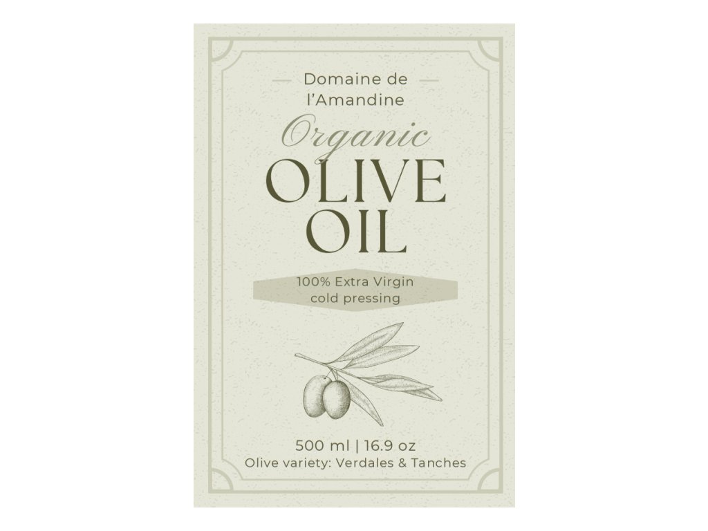 Mimořádně kvalitní olivový olej EXTRA VIRGIN přímo z vinařství Domaine de l'Amandine z údolí řeky Rhony ve Francii. Objem láhve 0,5l.