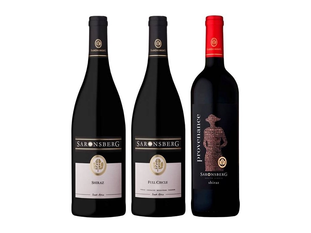 Balíček obsahuje tři oceněné Shirazy jihoafrického vinařství Saronsberg z údolí Tulbagh, 120 kilometrů severo-východně od Kapského města.